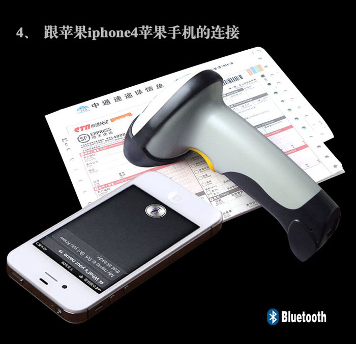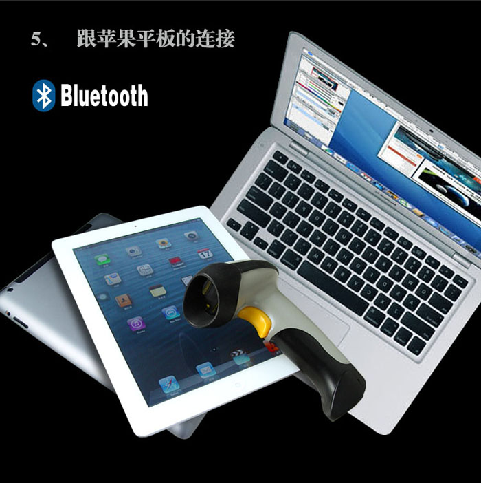 1、 可以通过无线蓝牙通讯,支持市面上主流的andriod操作系统、iOS苹果操作系统的各类智能电话、平板电脑上运行的应用程序对条形码扫描读入!
